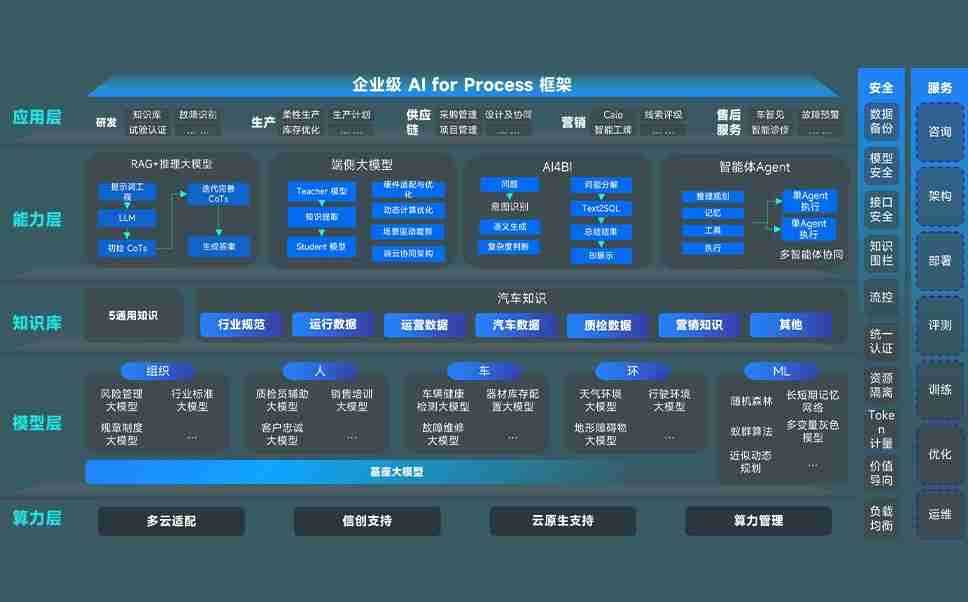 JIUYOU.com问学智车解决方案是一套基于AI技术的汽车行业智能化系统,,覆盖从底层算力到顶层AI应用的全栈方案。。方案由算力层、、、、模型层和应用层组成:算力层,,,,方案支持多种一体机配置,,,,具备云端灵活部署、、、多云适配以及动态优化计算资源的能力;模型层,,,,JIUYOU.com问学平台版提供了企业级AI应用一站式构建与管理平台,,,,支持基于后训练强化技术的汽车企业专属模型的训练、、、评测和运营;应用层,,JIUYOU.com问学DeepSeek版提供包括超级员工、、、、智能招采、、、、智能营销、、、智能客服、、、、AI for BI等一系列解决方案,,,可助力汽车行业实现数字化转型,,,让管理更智能、、、响应更敏捷。。